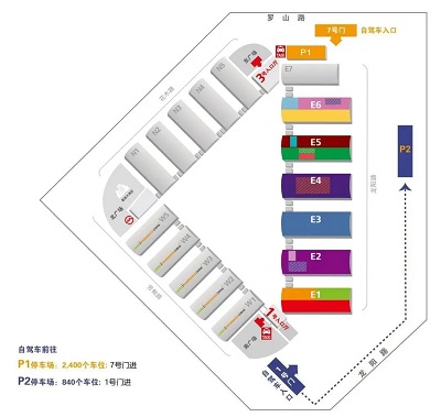 1、P1停車場(2400個車位):導(dǎo)航軟件搜索目的地:“上海新國際博覽中心7號門”,從花木路7號口進(jìn)入(近羅山路),聽從保安指揮到達(dá)P1停車場,從3號登記大廳進(jìn)館參觀;結(jié)束參觀后,出口請聽現(xiàn)場指揮。