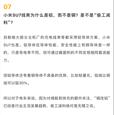 在新能源汽車領域,銅鋁之爭一直是一個備受關注的話題。最近小米汽車SU7用鋁線代替銅線,是不是“偷工減料”?該事件在汽車和科技領域迅速發(fā)酵沖上了各大媒體平臺熱搜,引起了大家廣泛而激烈的討論。但事實真的如此嗎?